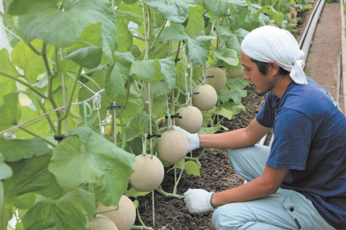In order for all nourishment to be concentrated on the one fruit, only one Crown Melon is grown on each tree. The “King of Fruit” Crown Melon is a creation shaped from both the expertise and long hours devoted by producers. The amount of greenhouse Crown Melons produced and exported is number one in Japan.
