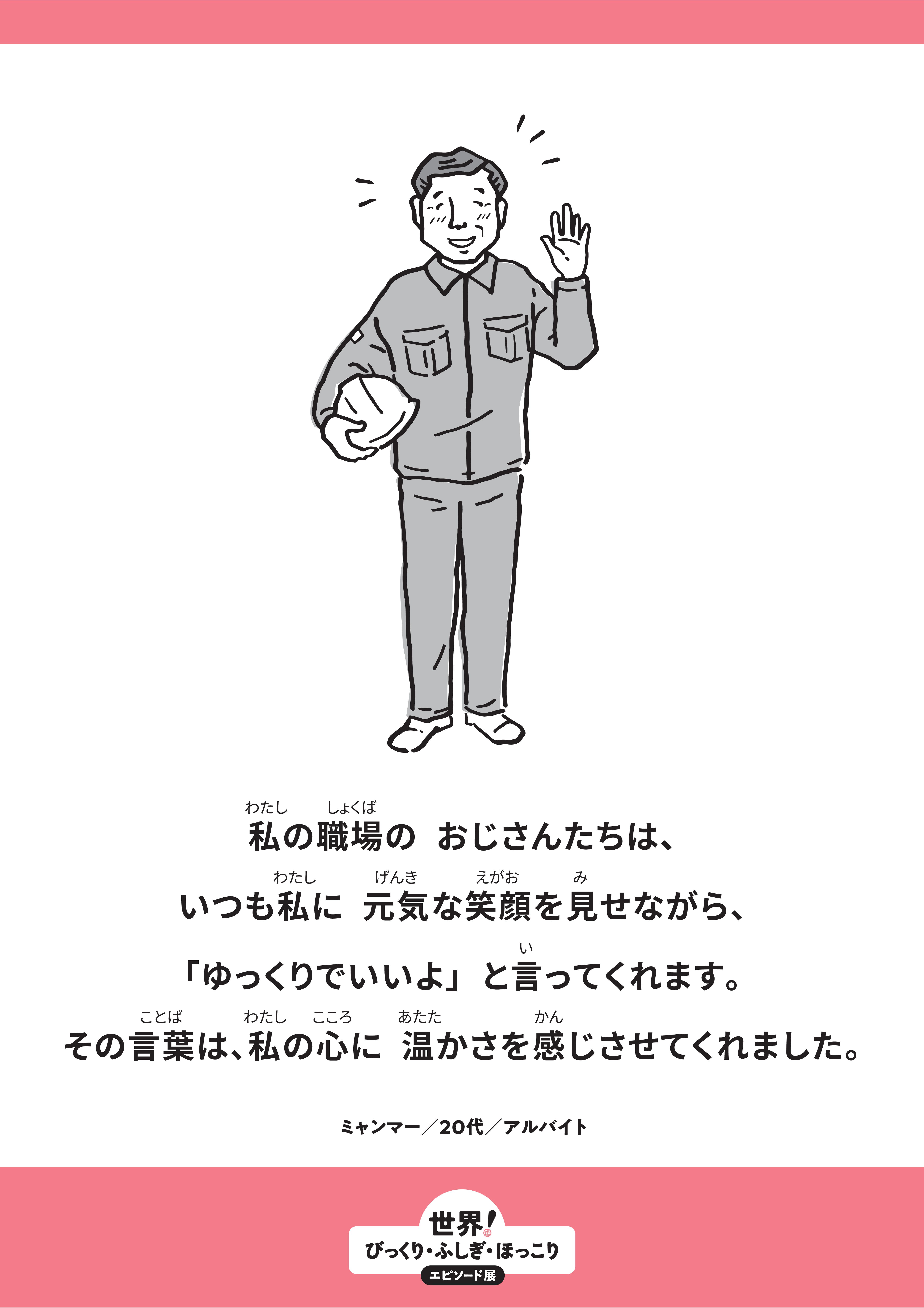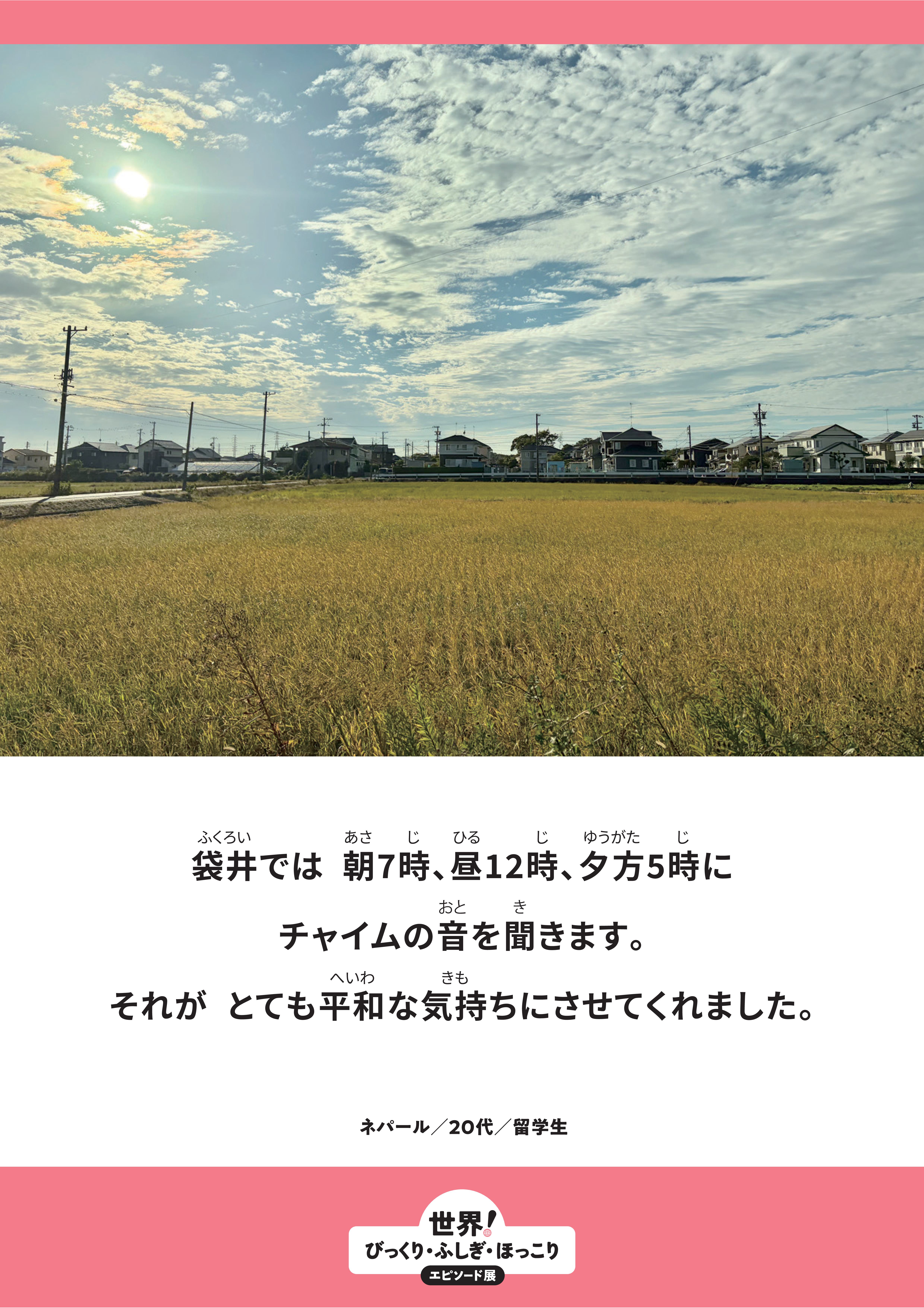 このプロジェクトの一環として、本市に暮らす外国人市民等から寄せられた、日々の暮らしにあふれる「驚き」、「親しみ」、「戸惑い」、「勇気」など、リアルであたたかいエピソードをパネルで展示します!