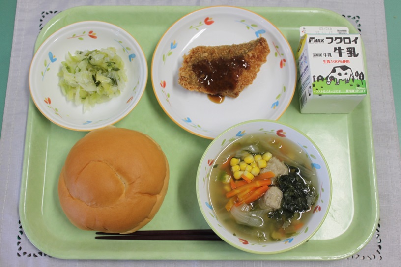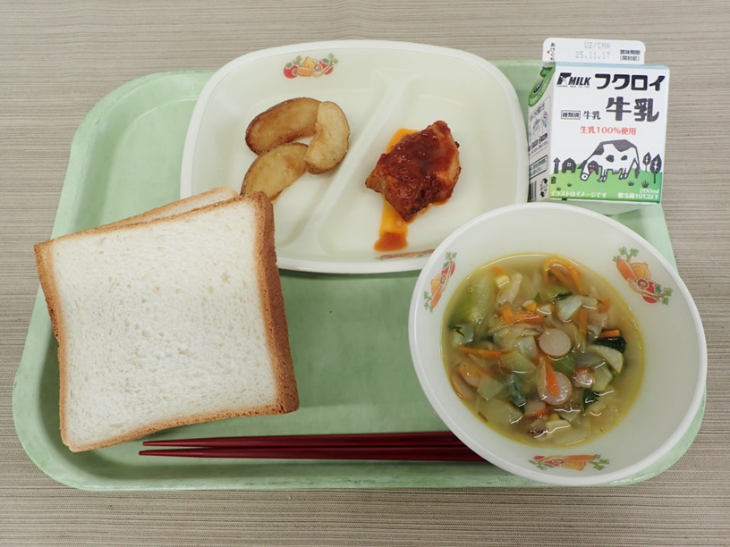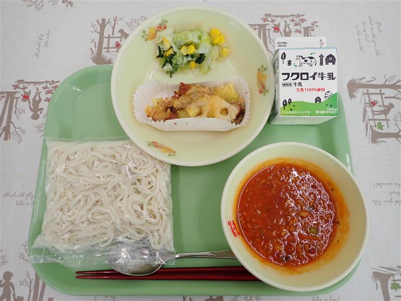 ソフトめん、ぎゅうにゅう、ミートソース、