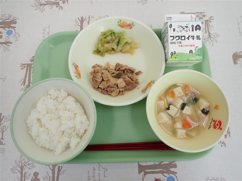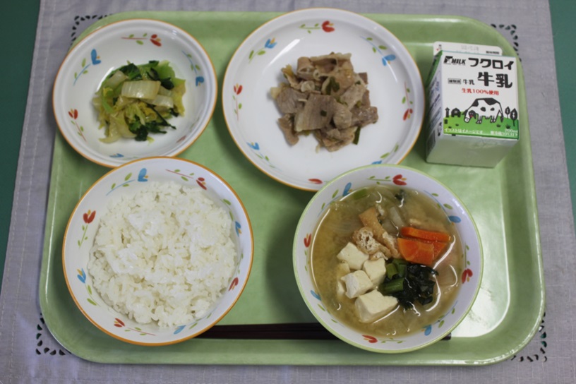 ごはん、ぎゅうにゅう、ぶたにくのねぎだれ、