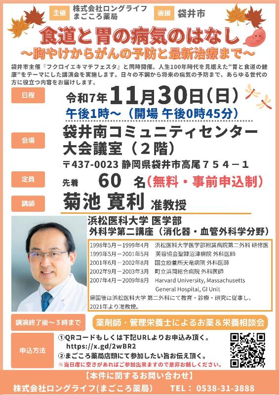 | 内容 | 人生100年時代を見据えた“胃と食道の健康”をテーマにした講演会 |