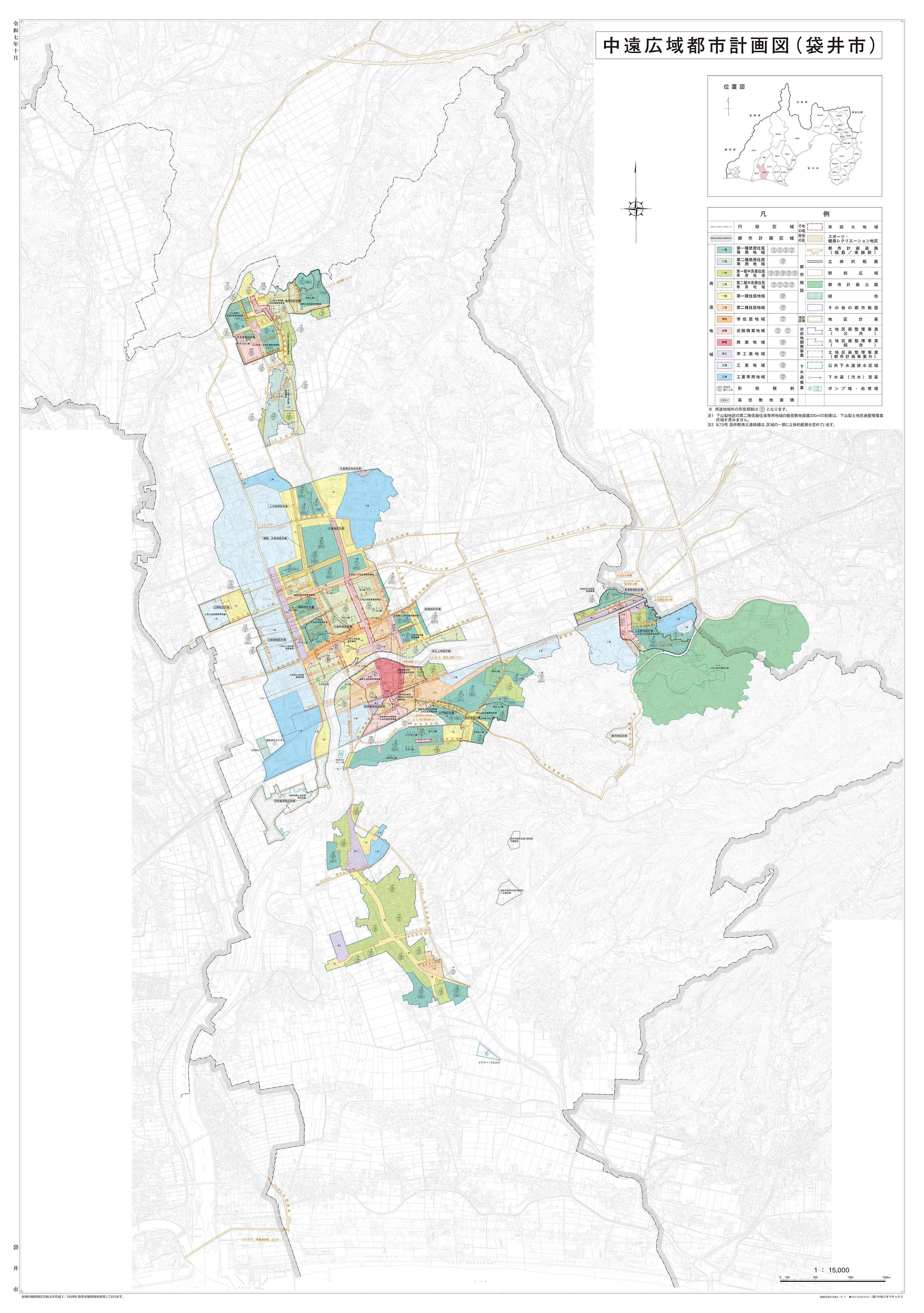 中遠広域都市計画図は、都市計画課の窓口で販売しています(1枚1,000円)。また、都市計画図のPDFファイルは、下記のリンクよりダウンロード可能です。都市計画図は、土地利用や建築計画の法規制を確認するための資料としてご活用ください。ただし、調査地点が用途地域や都市計画道路の境界付近にある場合は、都市計画課窓口での確認をお願いします。