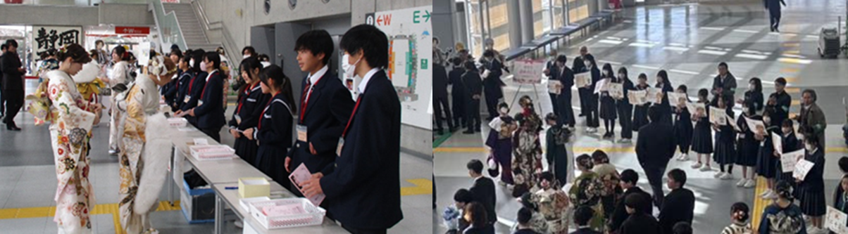 また、担当業務の合間には式典を見学する時間もあり、中学生たちにとって二十歳を迎えた人々の姿を間近で見る貴重な機会となりました。先輩世代の晴れやかな表情や祝福される様子は、数年後の自分を思い描くきっかけになったことでしょう。