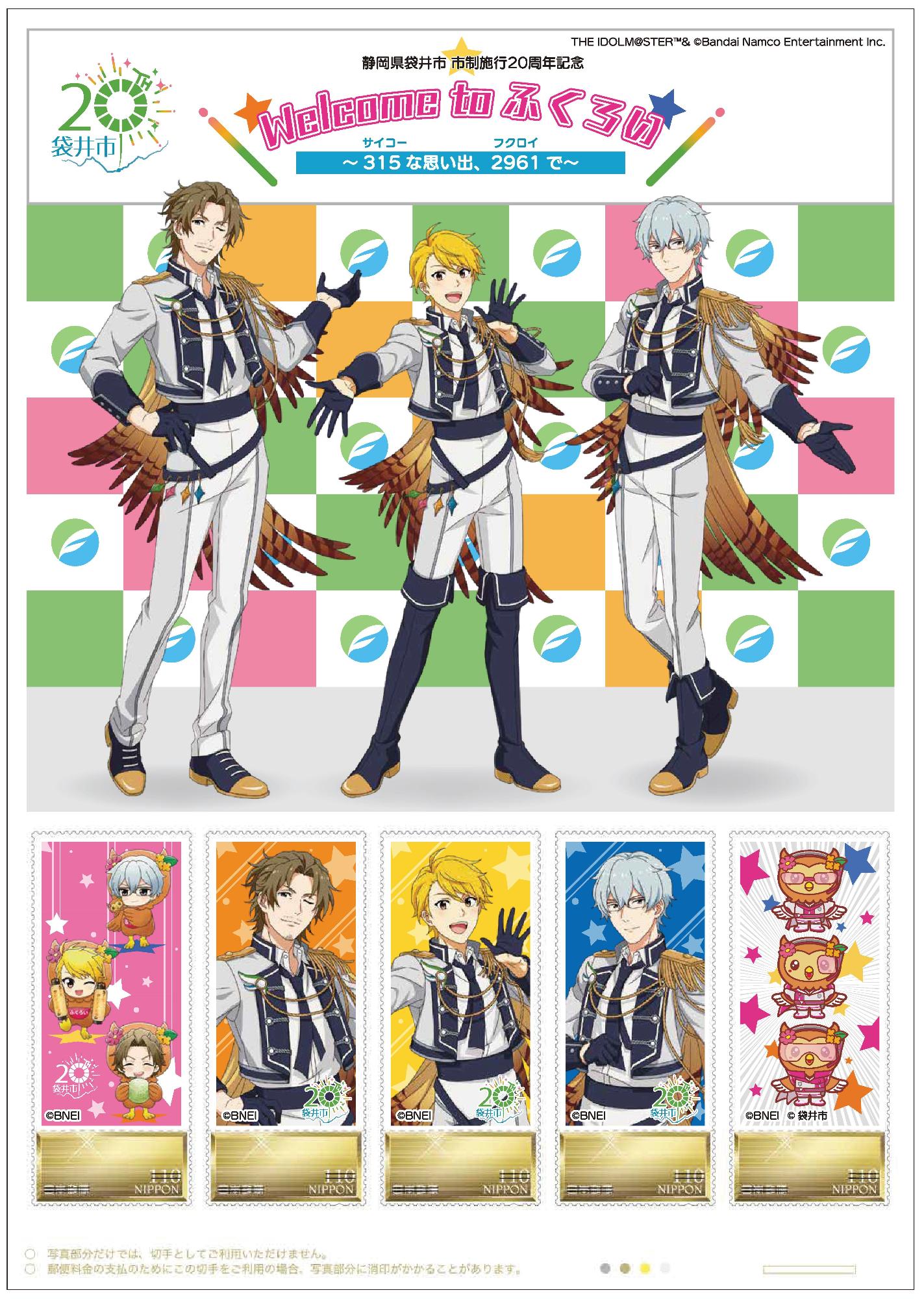本コラボ企画にご賛同いただきました日本郵便株式会社東海支社がオリジナルフレーム切手「袋井市×アイドルマスター SideM」を作成し、市内郵便局や日本郵便株式会社オンラインショップ等で販売します。