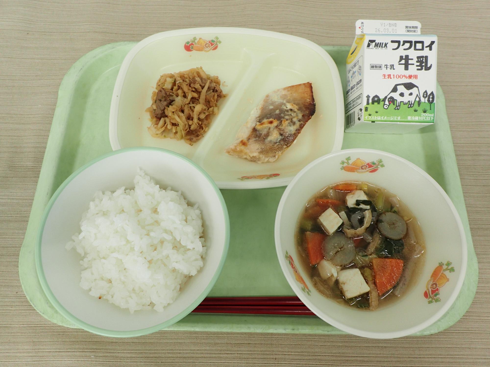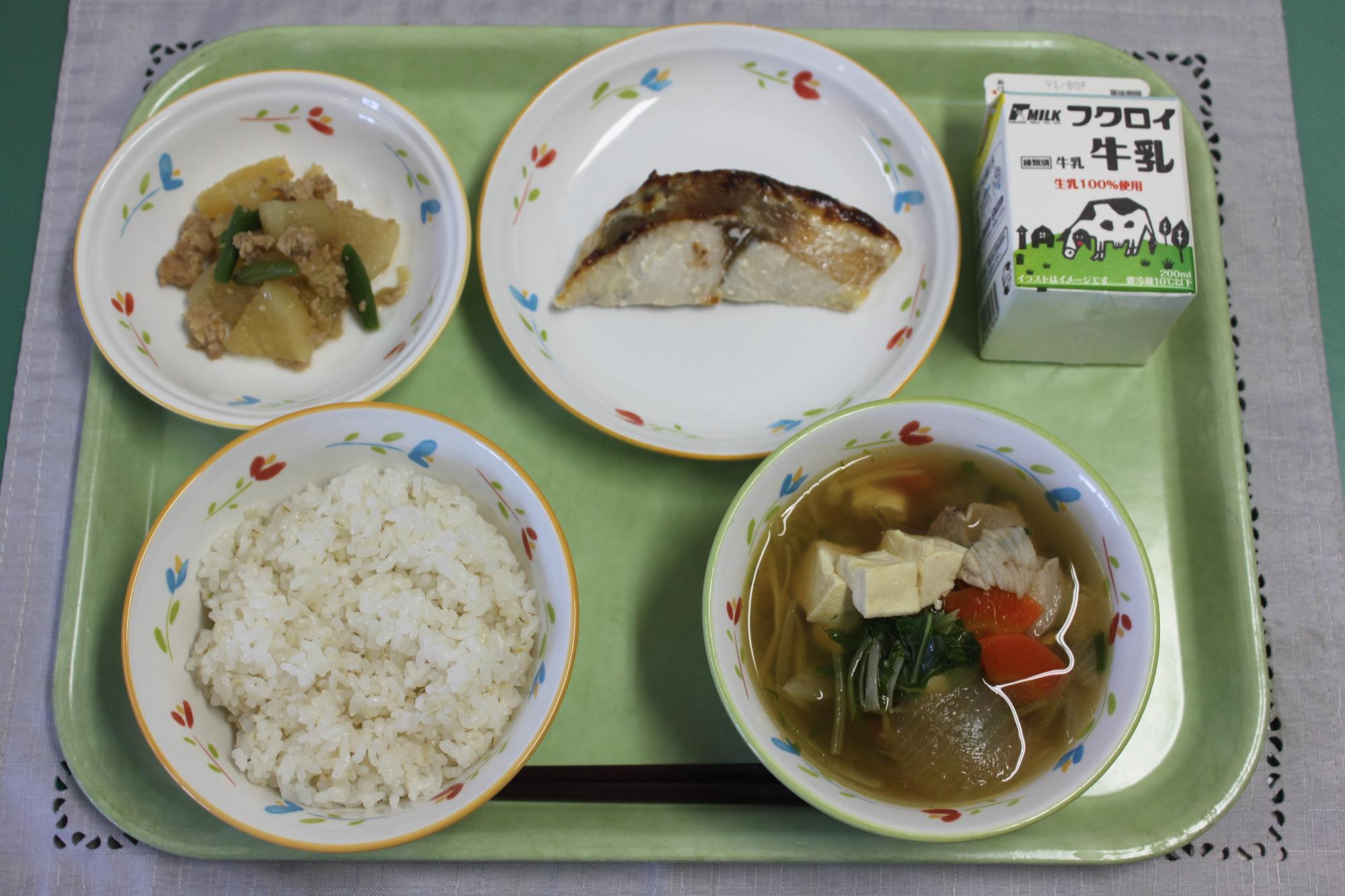 ごはん、ぎゅうにゅう、しいらのみそドレッシングやき、