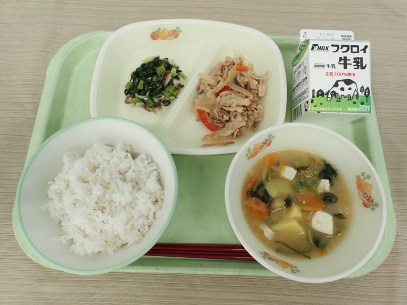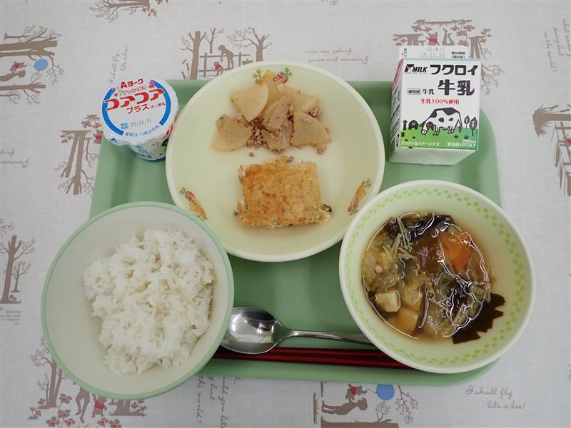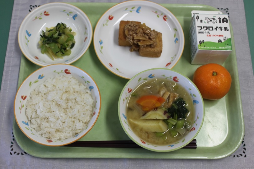 やさいのこうみあえ、さつまいものみそしる、みかん