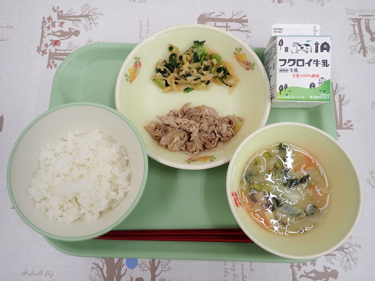 ごはん、ぎゅうにゅう、ぶたにくのしょうがやき、